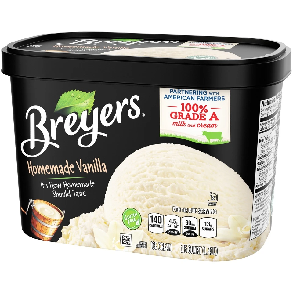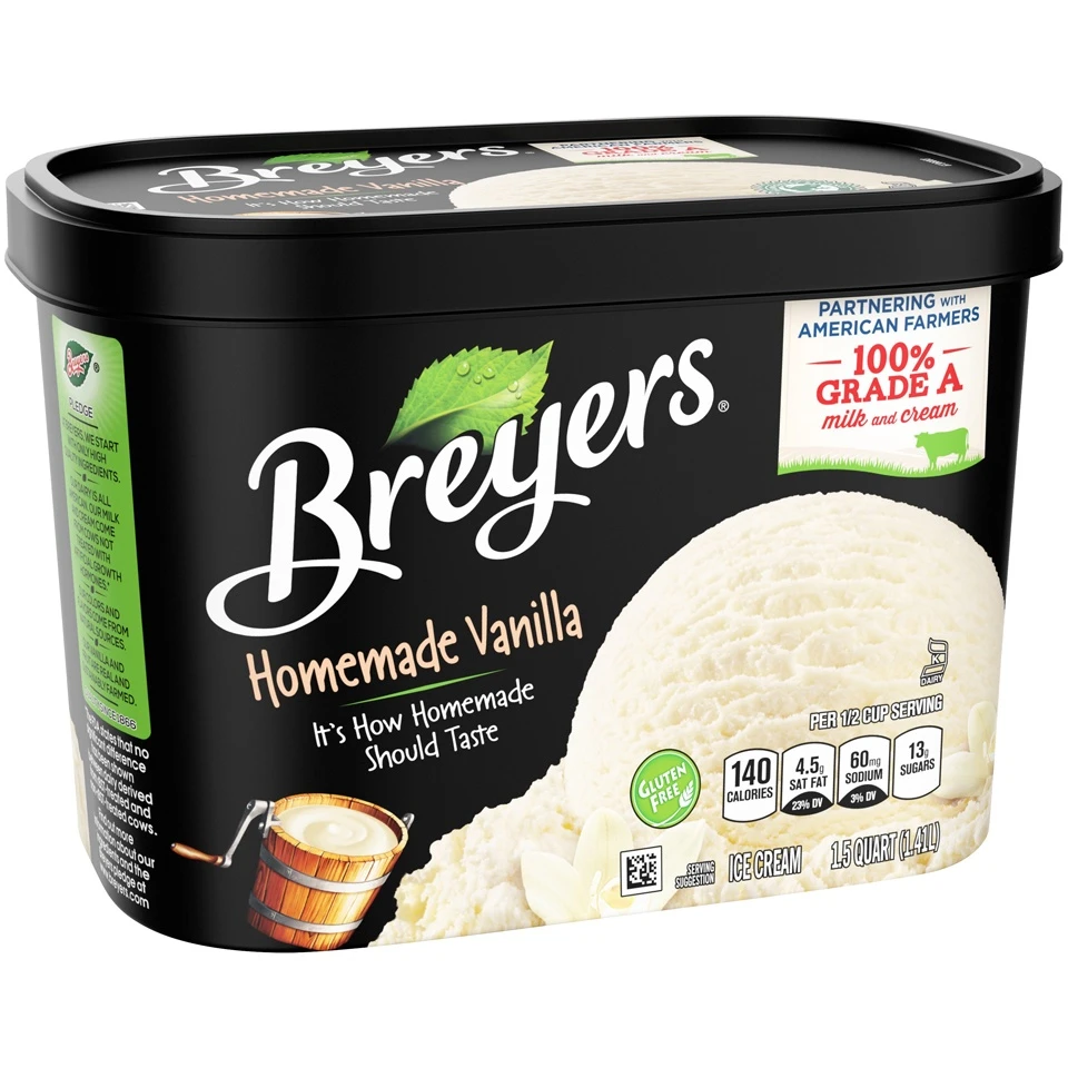 Breyers Homemade Vanilla ice cream is thick and smooth like it was just churned. This thick and smooth vanilla ice cream is made with fresh cream, sugar, milk, vanilla, and egg yolks. It’s how homemad…