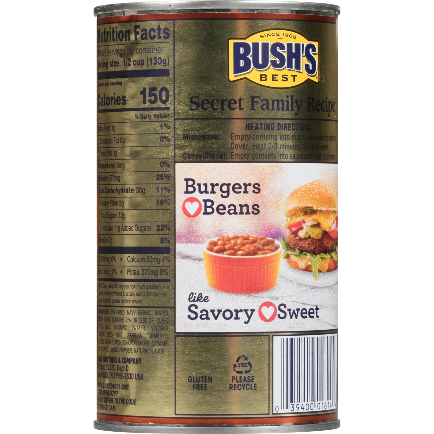 When hamburgers and hot dogs are on your table, it only makes sense that Bush’s Baked Beans go on the side. Our Secret Family Recipe uses tender navy beans, slow-simmered with real bacon, fine brown s…