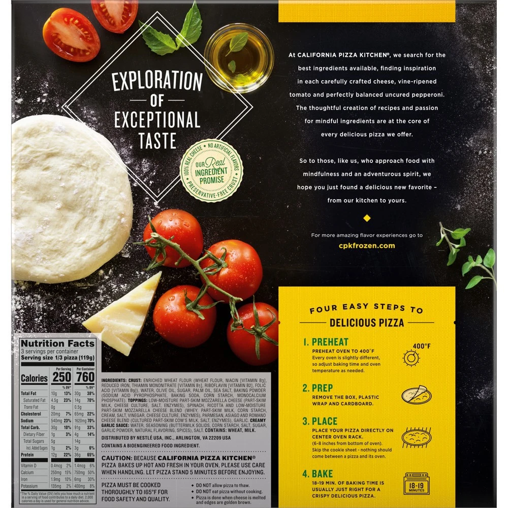 California Pizza Kitchen White Recipe Frozen Pizza with Crispy Thin Crust offers exceptional taste with purposeful ingredients. This thin crust pizza features spinach, garlic, ricotta, mozzarella, Par…