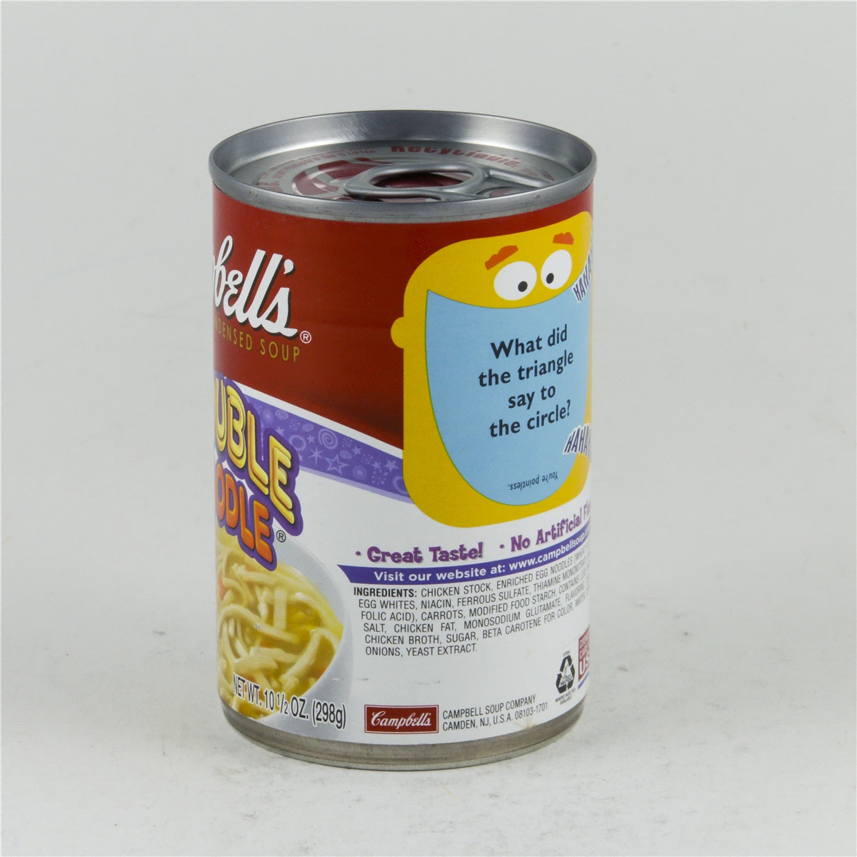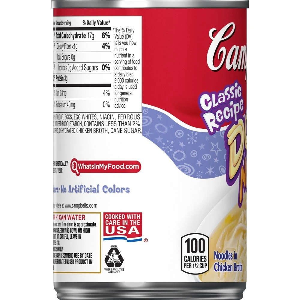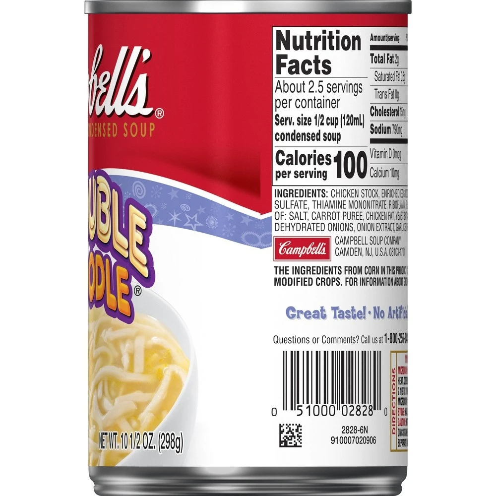 Kids love that Campbellu2019su00ae Condensed Double Noodle Soup is packed with twice as many noodles. Parents love that it lacks artificial flavors. Itu2019s a win-win for all!