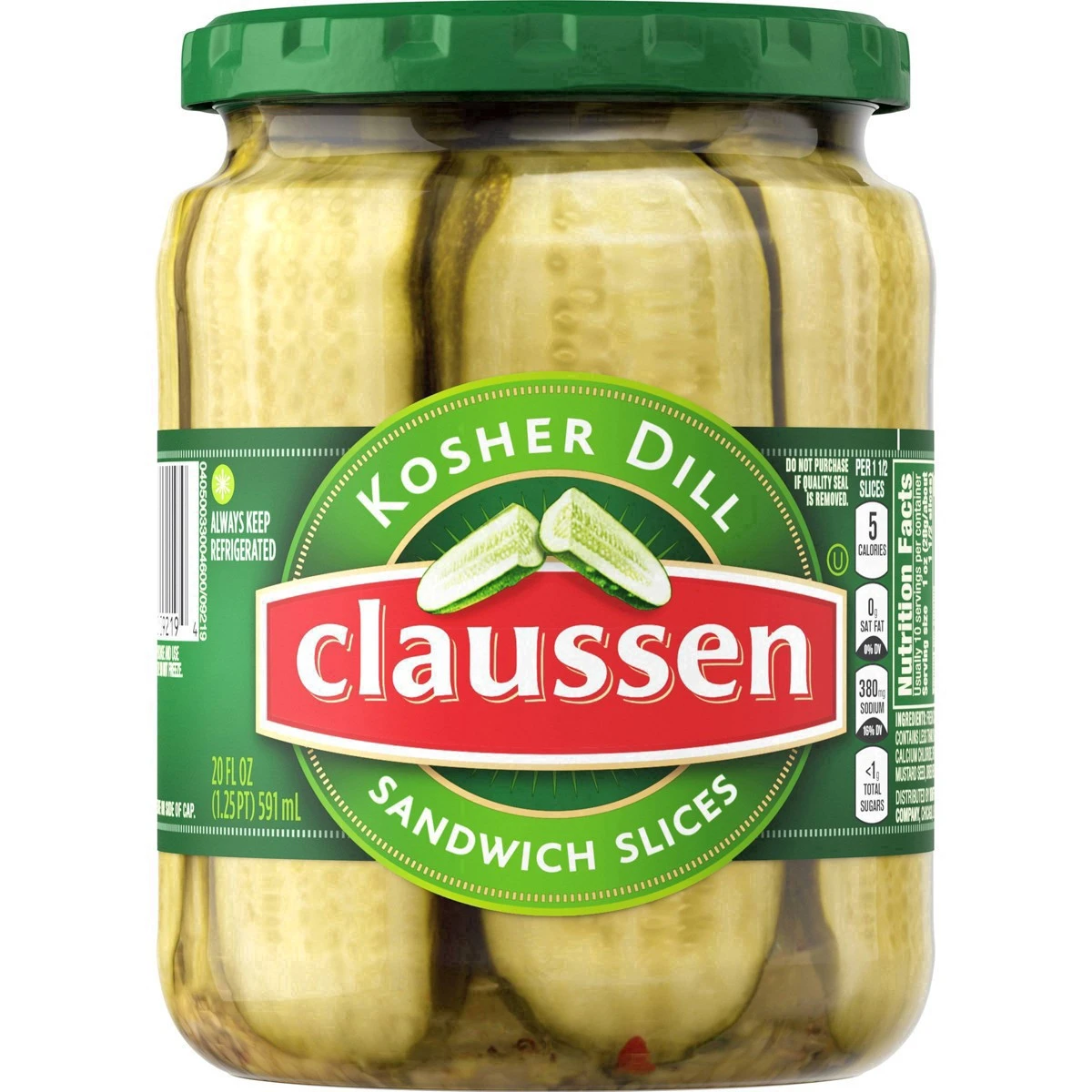 Our Claussen Sandwich Slices are crafted with fresh cucumbers picked straight from the vine and refrigerated for our classic Claussen crunch. Sliced perfectly for sandwiches, our pickle slices add a z…