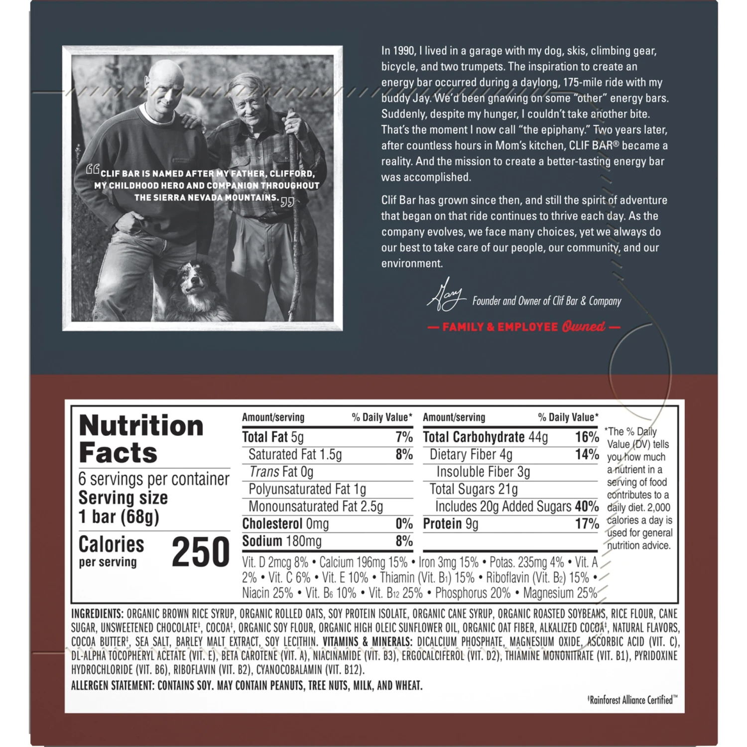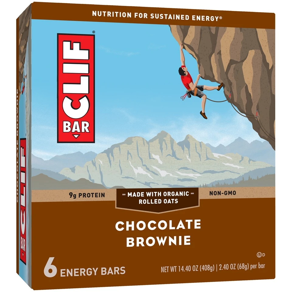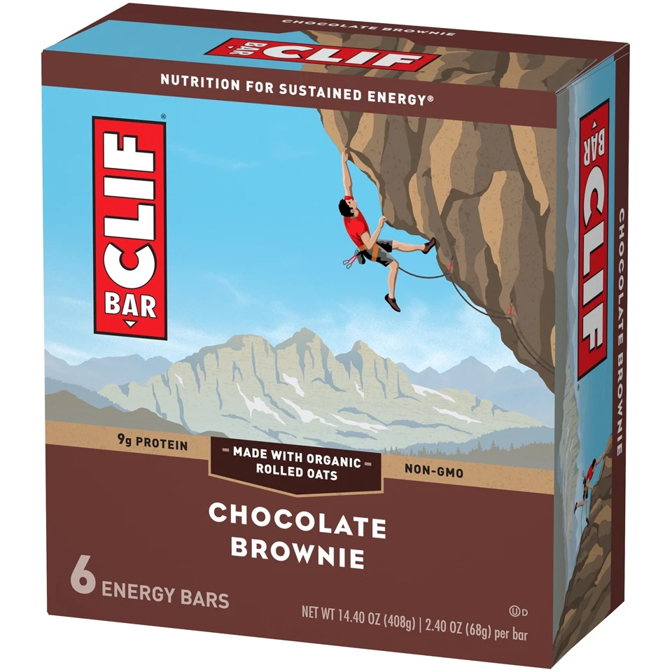 Clif Bar Energy Bar Chocolate Brownie. Made with organic rolled oats. Nutrition For Sustained Energy. 9g protein. 5g fiber.