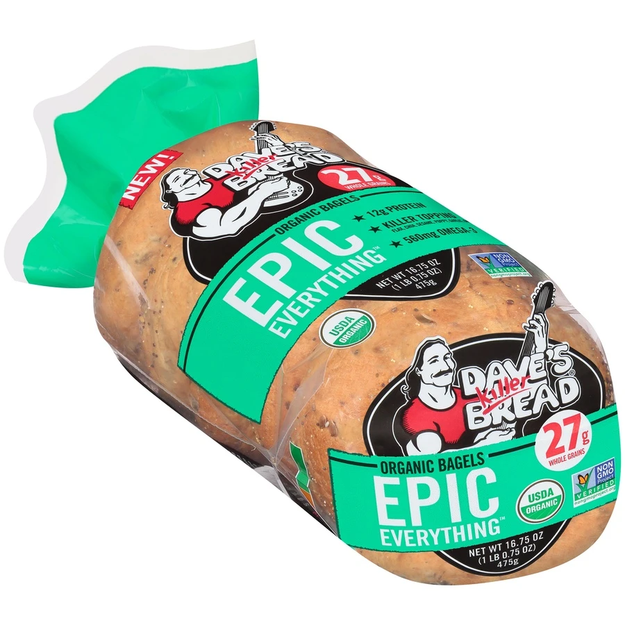 Dave’s Killer Bread® Epic Everything® Bagels are USDA organic bagels that will make your breakfast epic! Epic Everything® bagels are Non-GMO Project Verified and USDA organic. 13g protein, 680mg ALA-O…