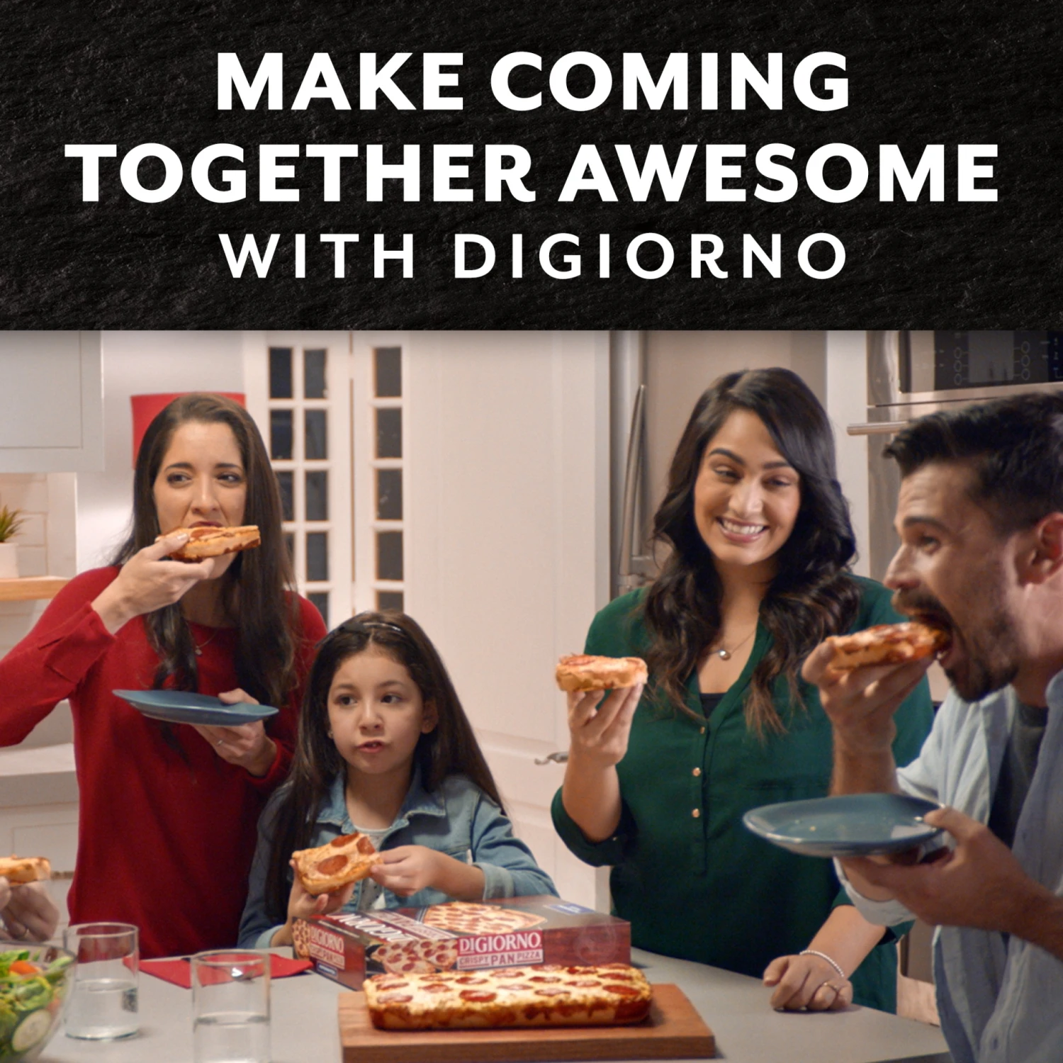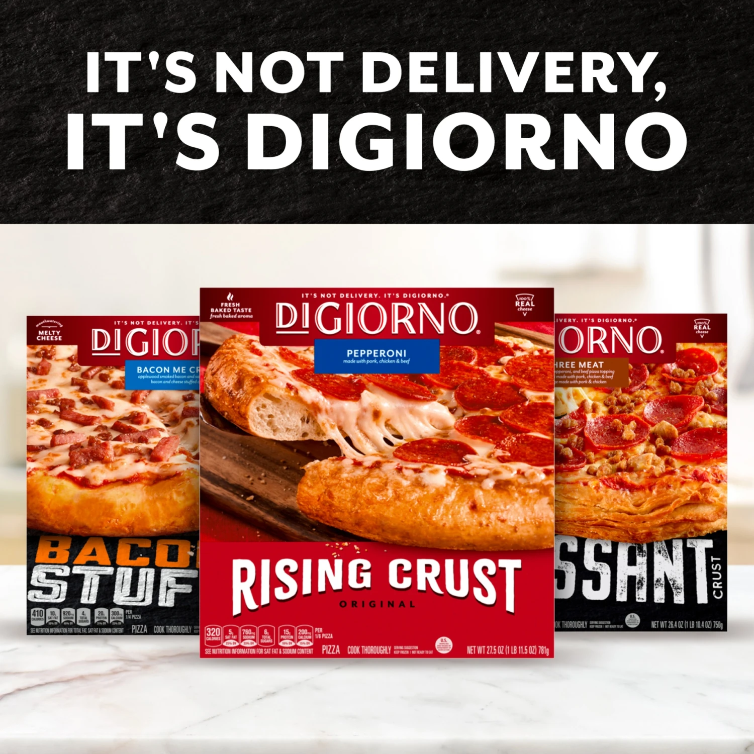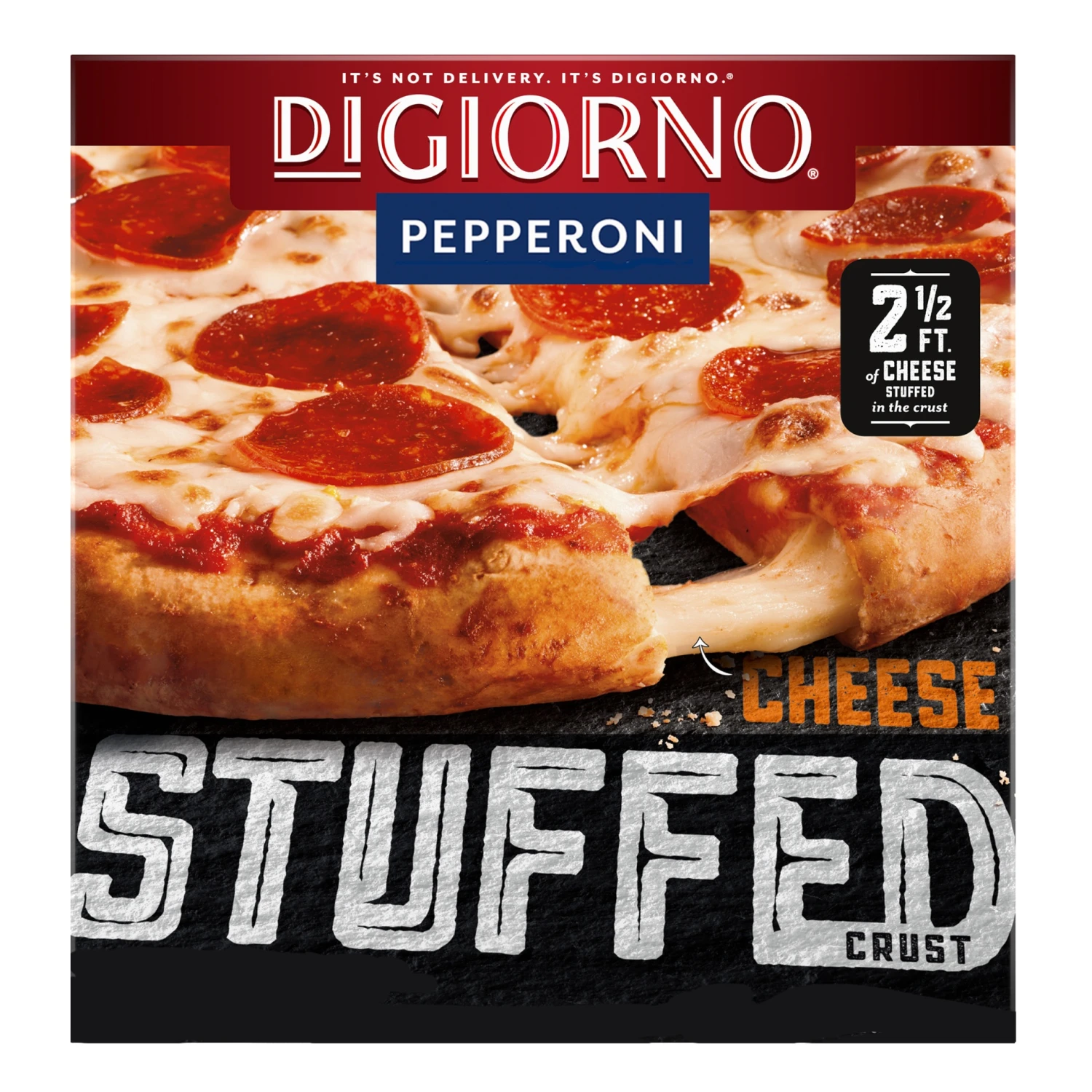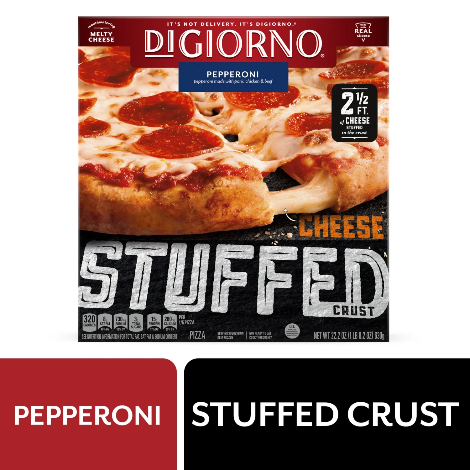 DIGIORNO Pepperoni Frozen Pizza on a Stuffed Crust is created to bake up golden brown on the outside with 2 1/2 feet of mouthwatering, melty cheese stuffed in the crust. This DIGIORNO frozen stuffed c…