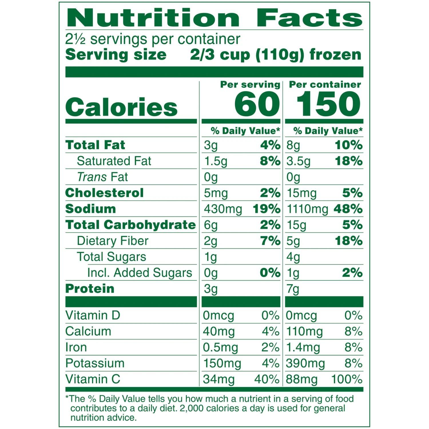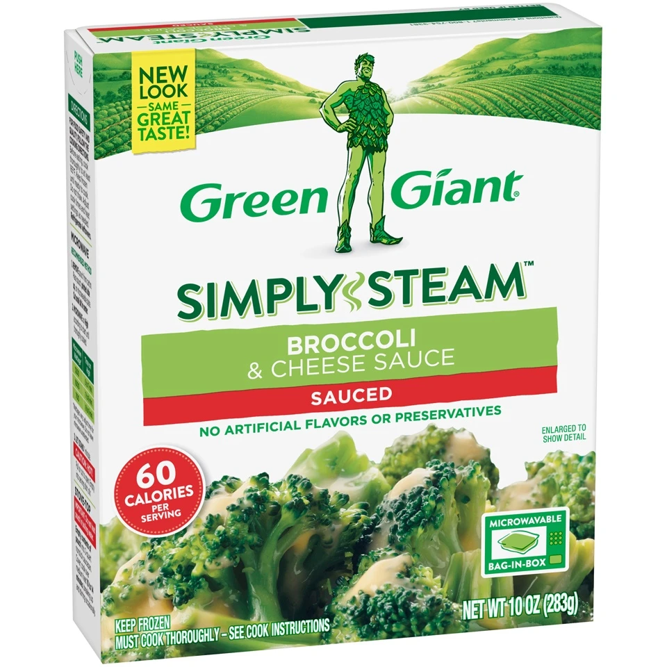 No artificial flavors or preservatives. 60 calories per serving. Microwavable. Bag-in-box. New look. Same great taste! Fits your lifestyle and your freezer. Green Giant Simply Steam vegetables are not…