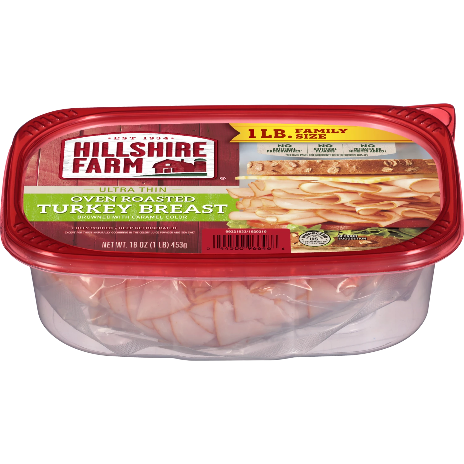 16 oz Hillshire Farm Ultra Thin Deli Sliced Turkey Breast Lunchmeat Oven Roasted Turkey Breast is made with slow cooked, oven roasted turkey and no artificial flavors. Fully cooked and ready-to-eat, s…