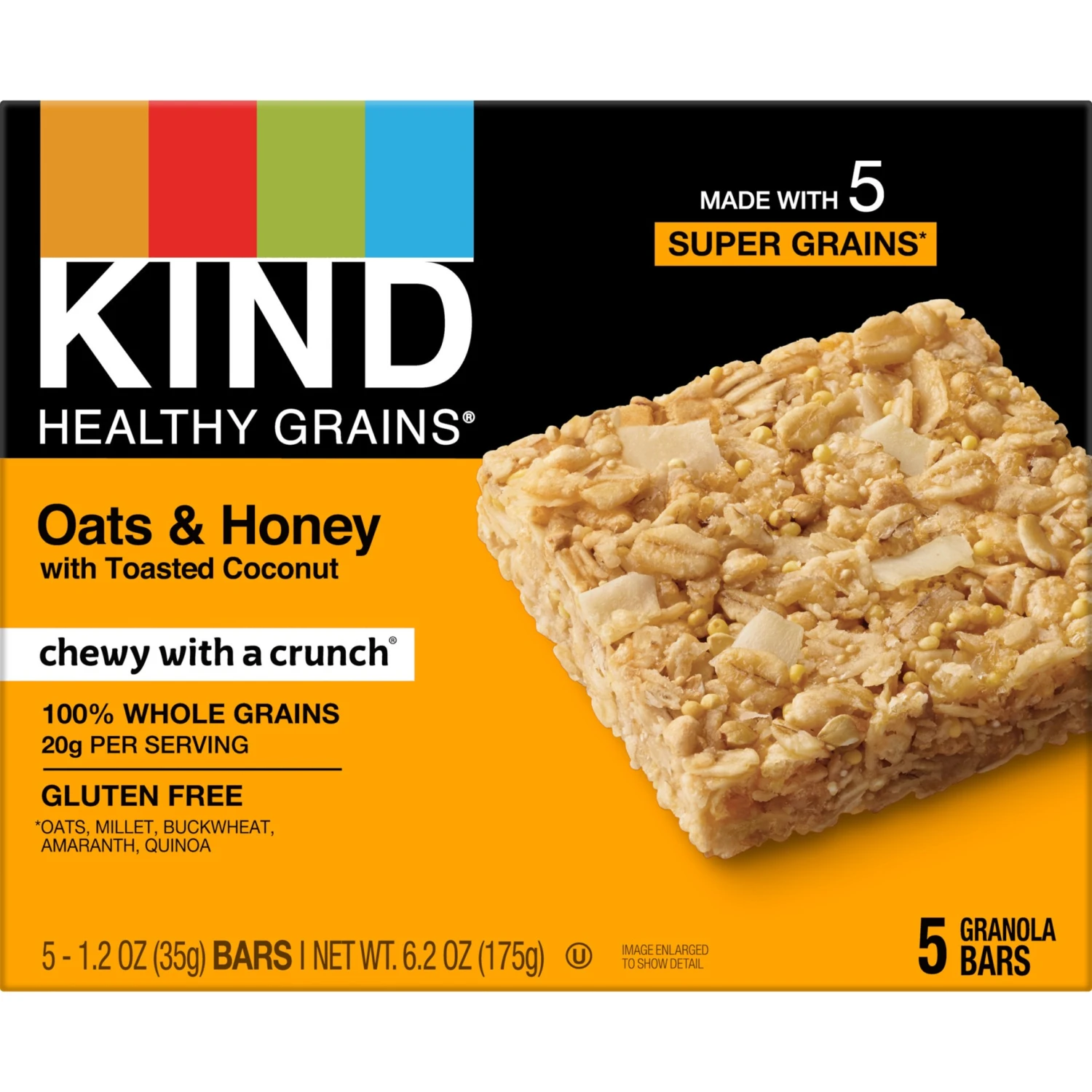 KIND HEALTHY GRAINS Oats & Honey with Toasted Coconut bars are gluten free bars that combine 100% whole grains with toasted coconut and real honey. These snack bars combine five super grains – oats, m…
