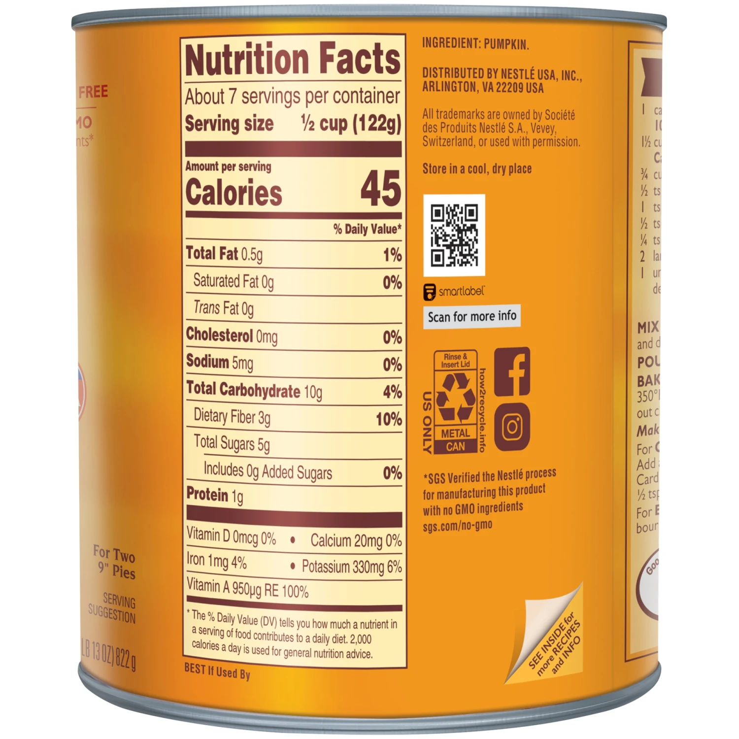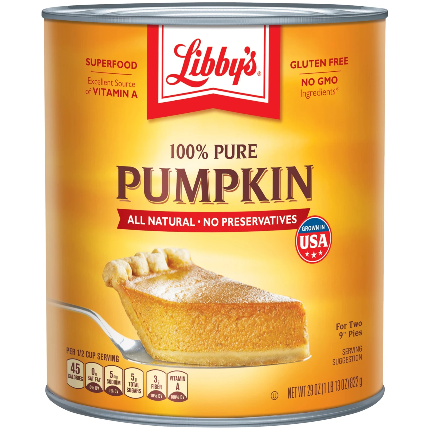 Libby’s 100% Pure Canned Pumpkin lets you enjoy delicious pumpkin flavor in all your favorite recipes. Libby’s all natural pumpkin puree offers a good source of fiber and contains no GMO ingredients* …