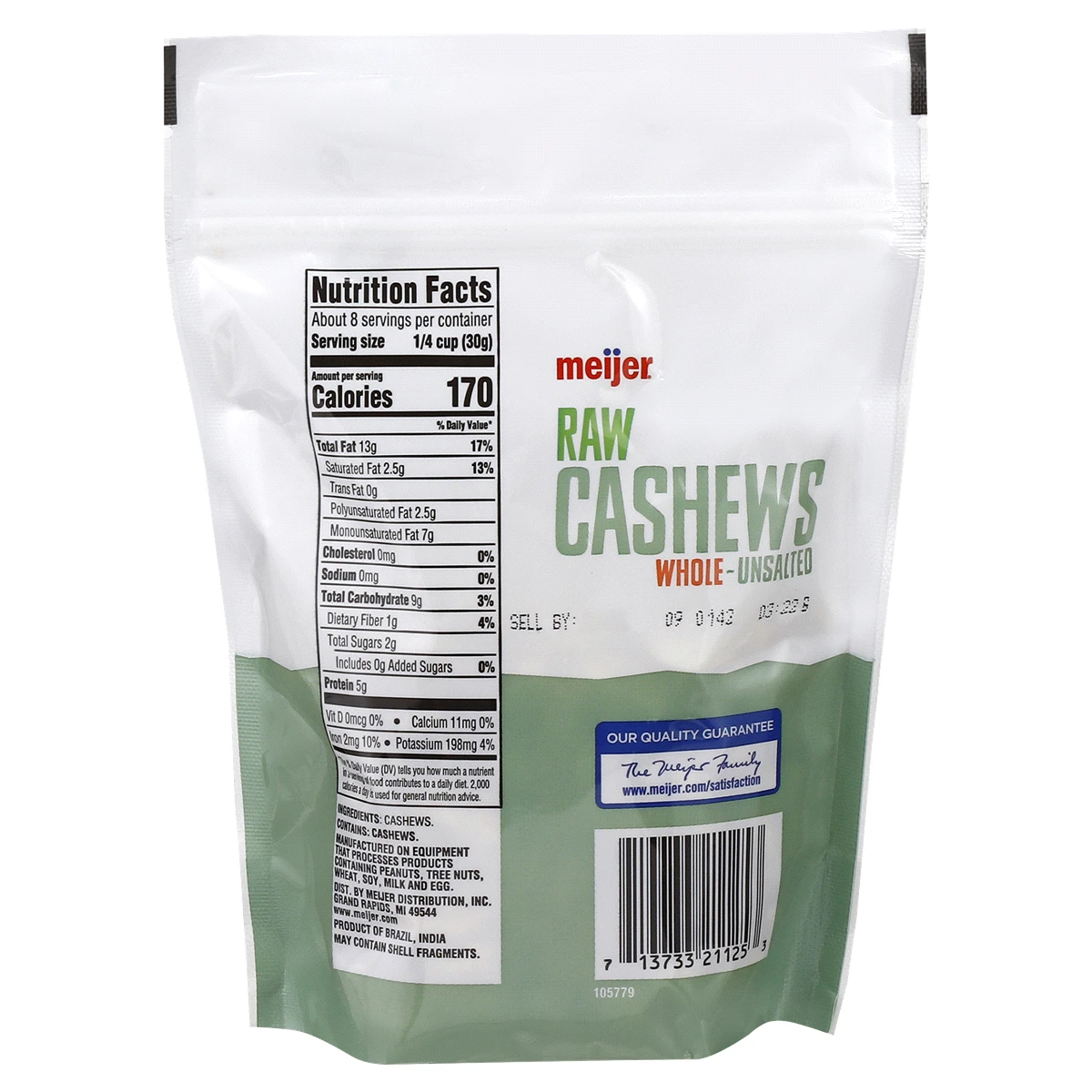 Meijer Raw Cashews, Unsalted