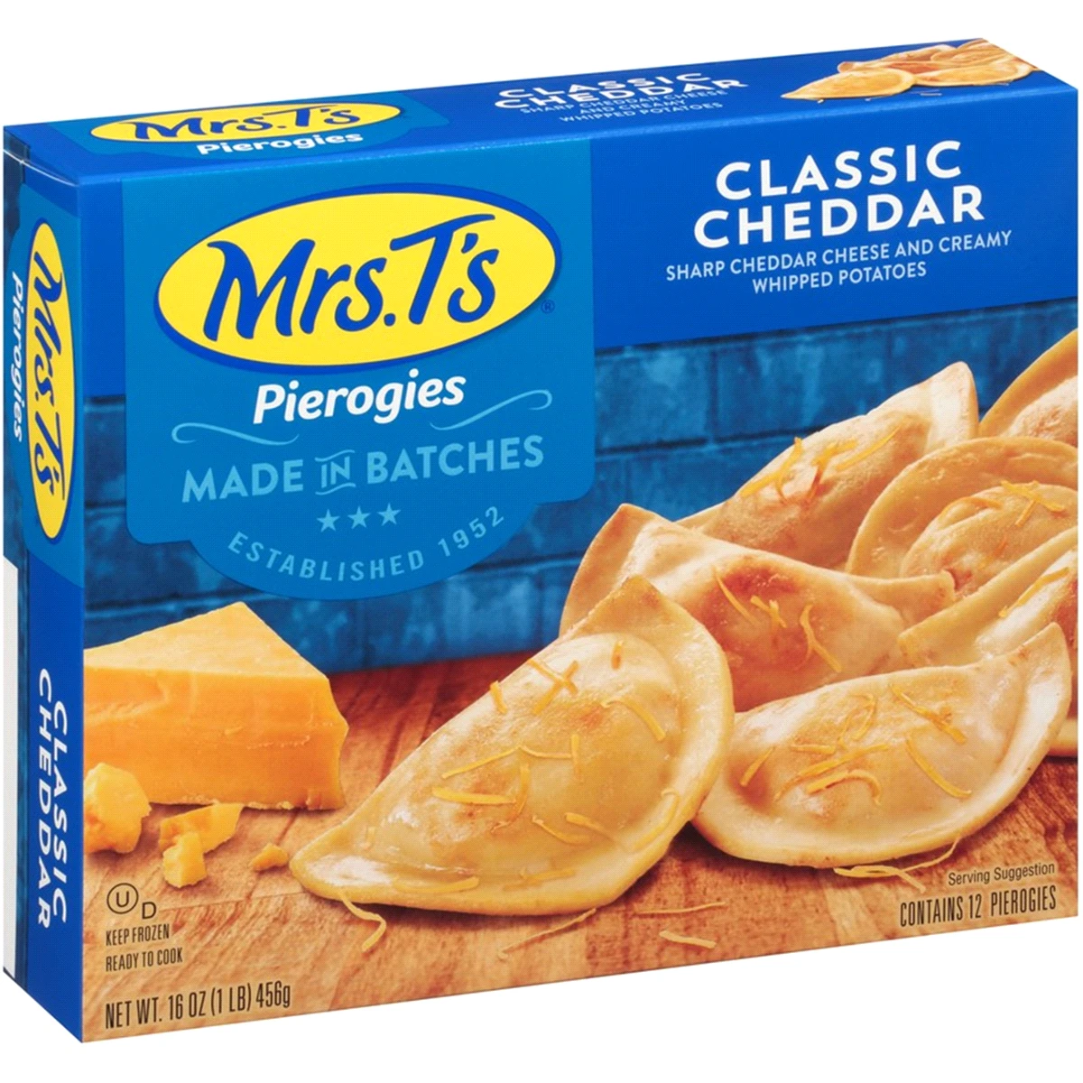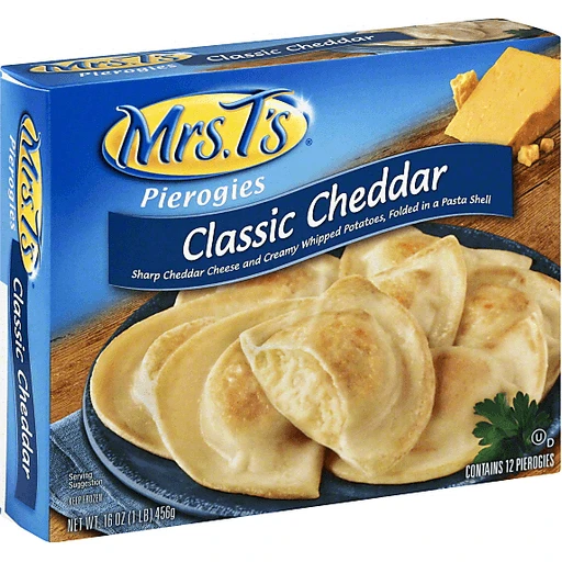 Sharp cheddar cheese and creamy whipped potatoes, folded in a pasta shell. Mrs. T’s pierogies are bursting with the flavor you love. Satisfying. Delicious. Real. Twitter; Pinterest; Facebook. We belie…