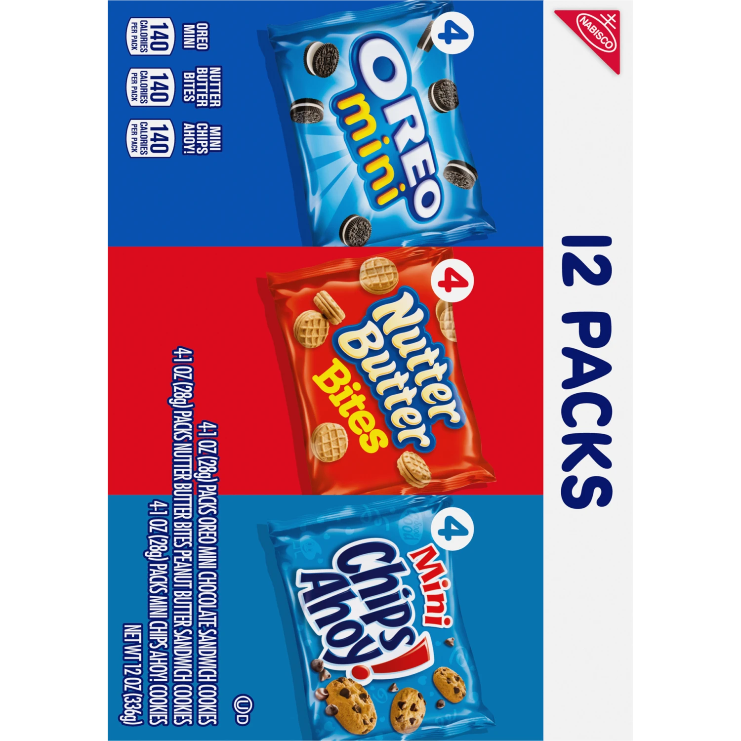 This Nabisco Cookie Variety Pack includes OREO Mini cookies, Nutter Butter Bites and CHIPS AHOY! Mini for easy, on-the-go snacking. These cookie packs are bite-size versions of classic cookies, just r…