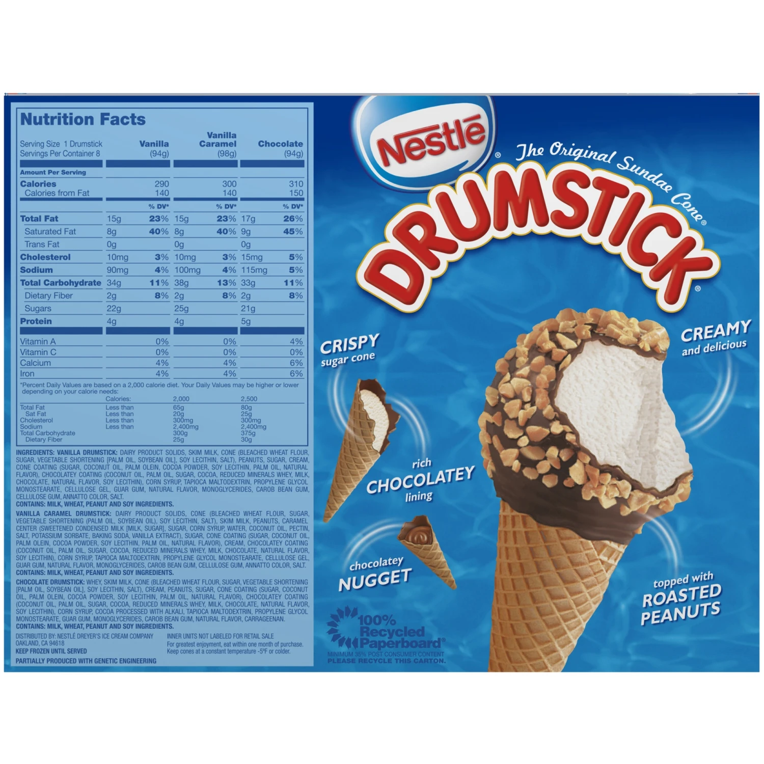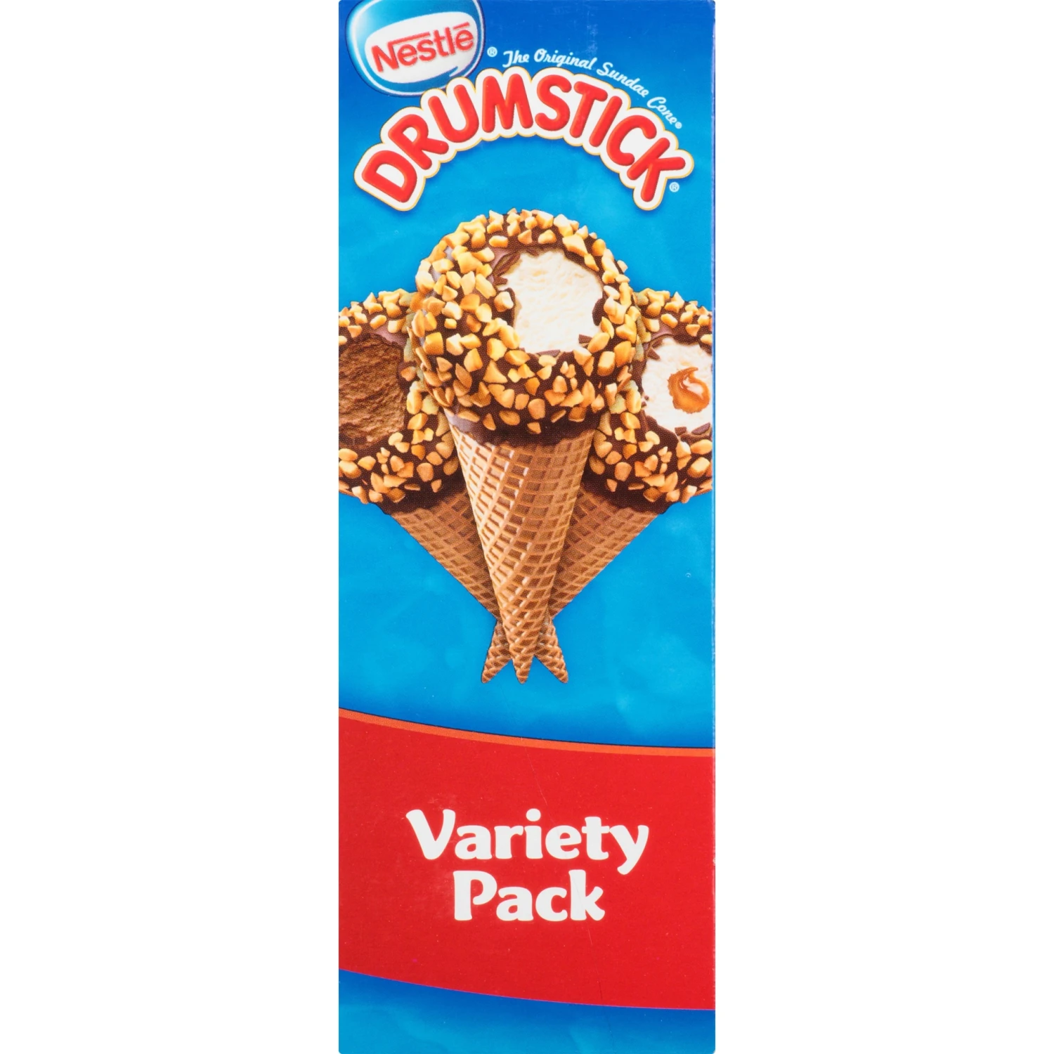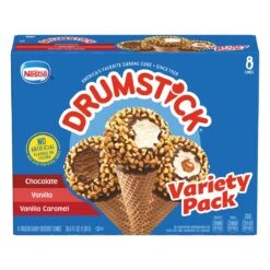 Drumstick Chocolate, Vanilla, Vanilla Caramel Cones Variety Pack features creamy chocolate or vanilla centers in a rich, crunchy, chocolatey dipped coating. Starting with a crispy waffle cone, indulge…