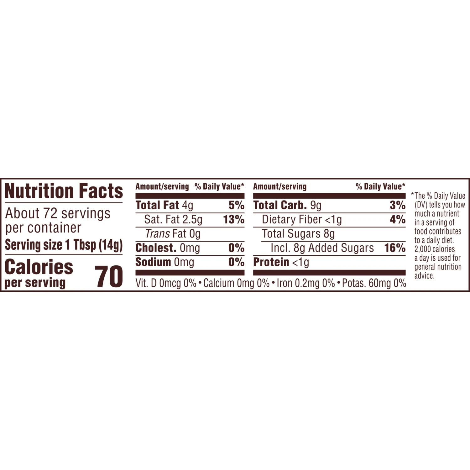 No artificial flavors or colors. Per 1 Tbsp: 70 calories; 2.5 g sat fat (13% DV); 0 mg sodium (0% DV); 8 g total sugars. Gluten free. No preservatives. Nutritional Compass: Good food, good life Nestle…