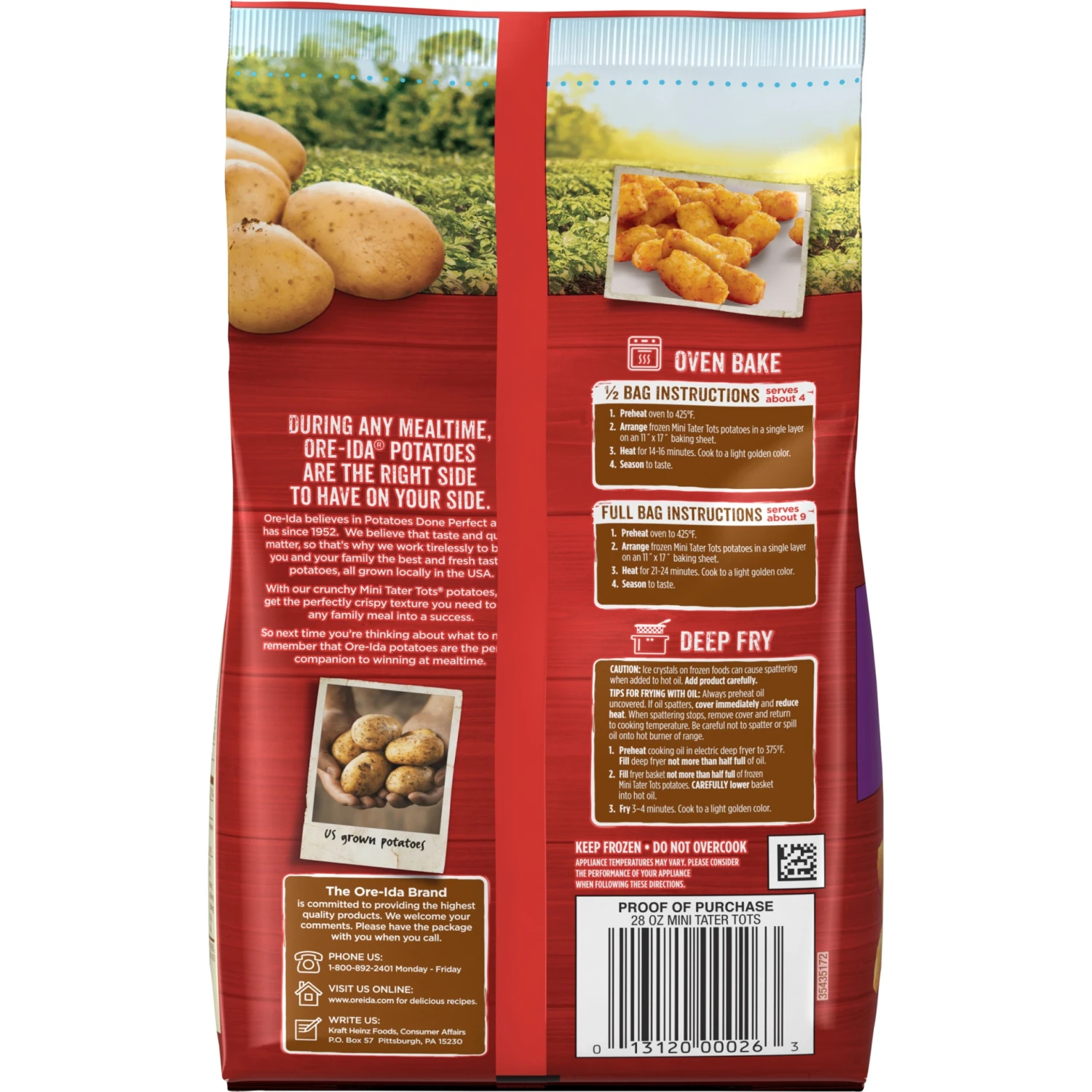 Ore-Ida Mini TATER TOT potatoes make it easy to enjoy a quick, easy potato side dish at home. Crispy and golden, these mini tots are made from freshly peeled, American grown potatoes that are shredded…