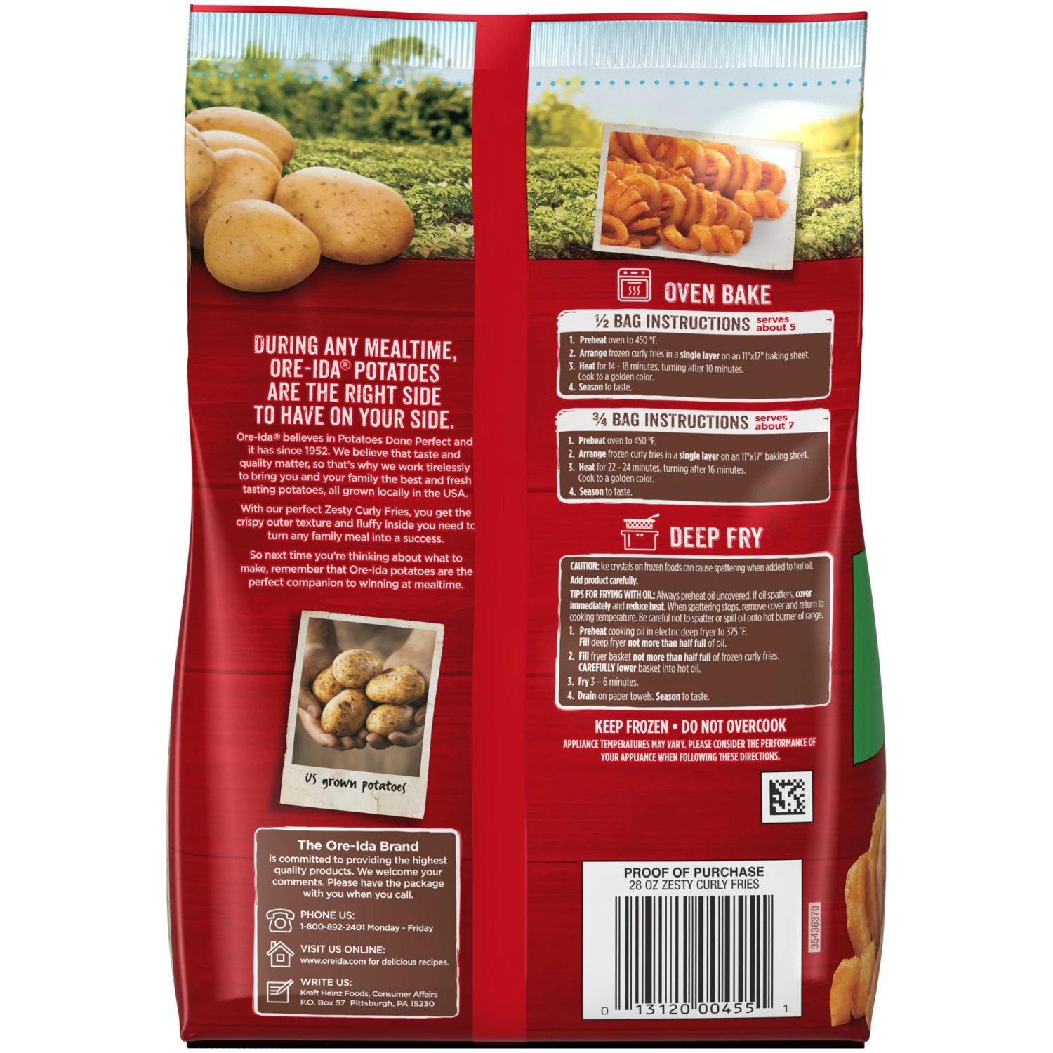 Ore-Ida Zesty Seasoned Curly Fries make it easy to enjoy delicious fries at home. Crispy, golden and perfectly seasoned, these Grade A curly fries are made from freshly peeled, American grown potatoes…