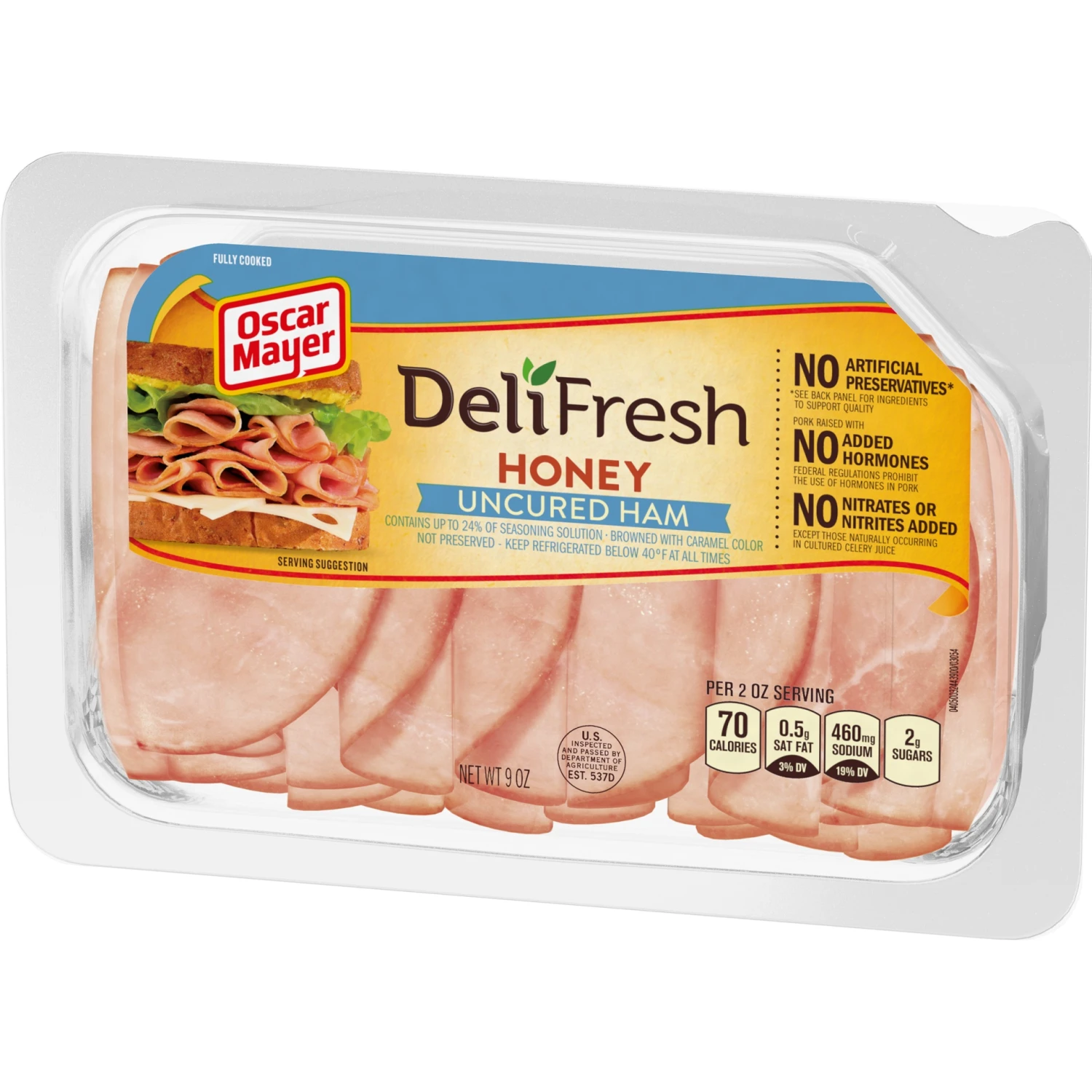 Make a delicious deli sandwich at home with Oscar Mayer Deli Fresh Honey Uncured Ham, Contains Up To 24% Of Seasoning Solution, Browned With Caramel Color, Sliced Lunch Meat. No Nitrates or Nitrites A…