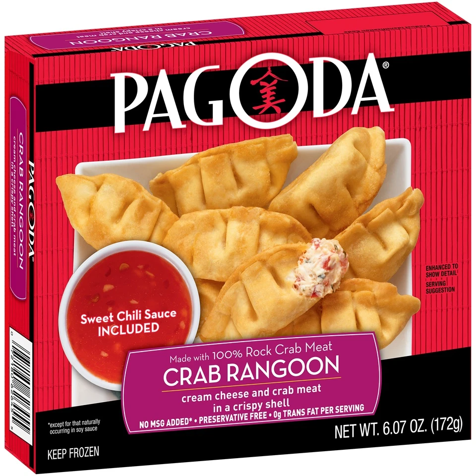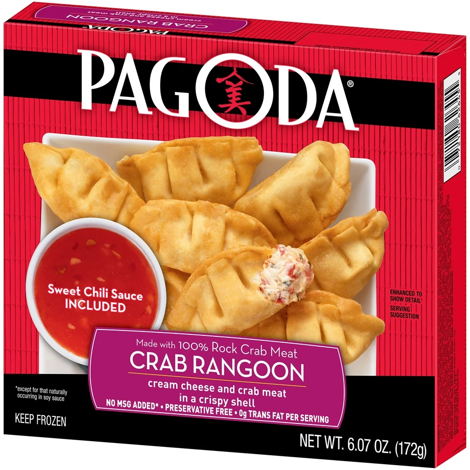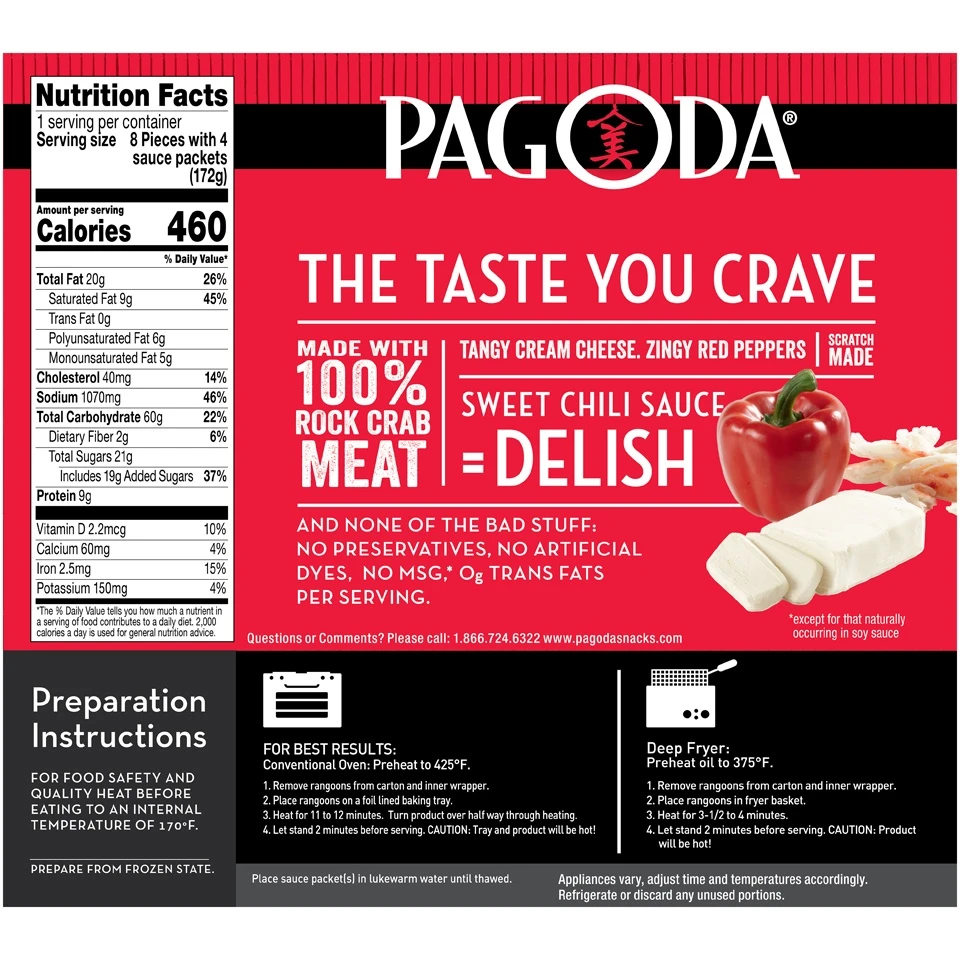 Our appetizing pagoda crab rangoons have crispy shells packed with delicious 100 rock crab meat and real cream cheese filling and are accompanied by a sweet chili sauce for an extra flavor kick so go âŚ
