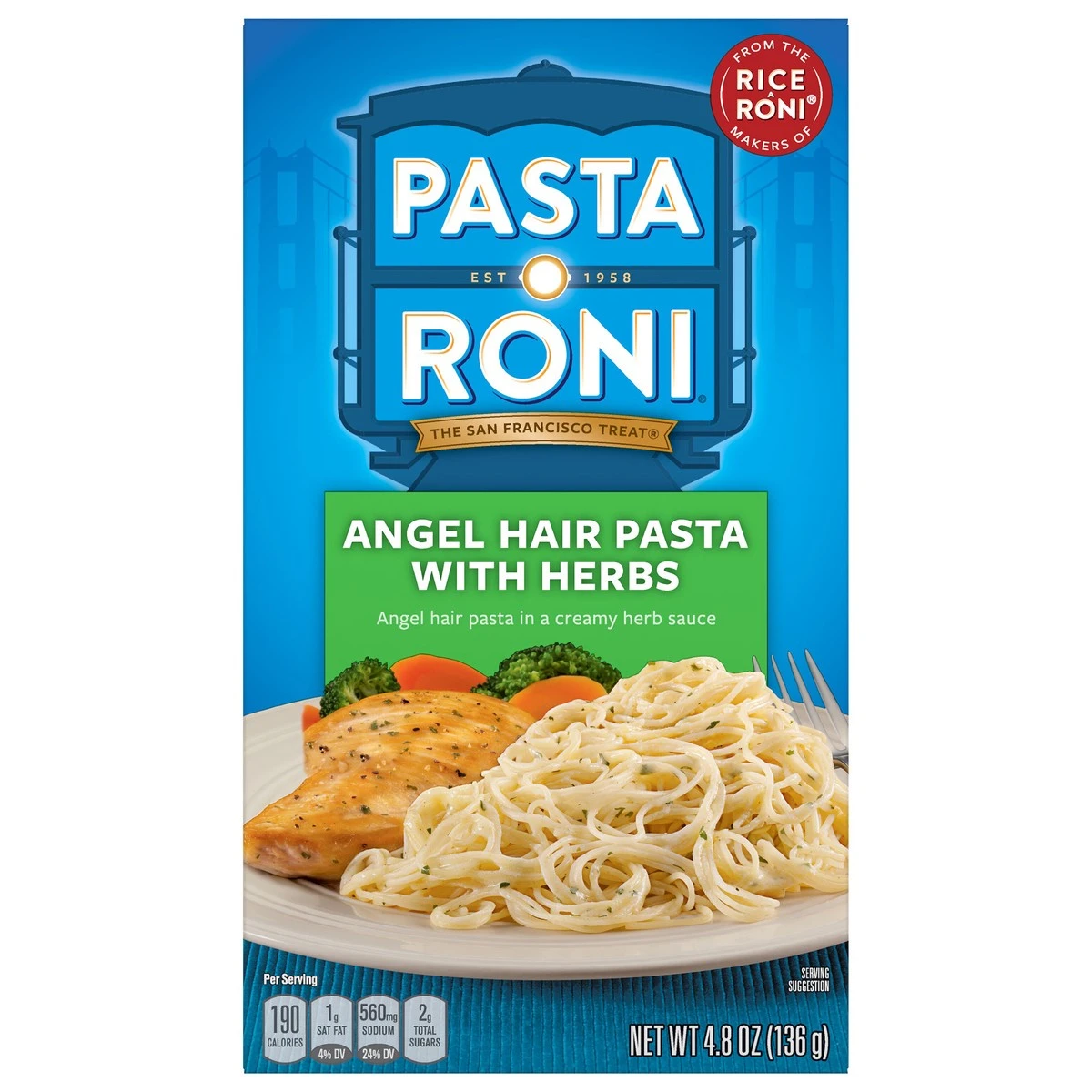 From the makers of Rice A Roni. Est 1958. Cooks in 5 min. The San Francisco treat. No drain. Package contains empty space to accommodate pasta to seasoning ratio. This package is sold by weight, not b…