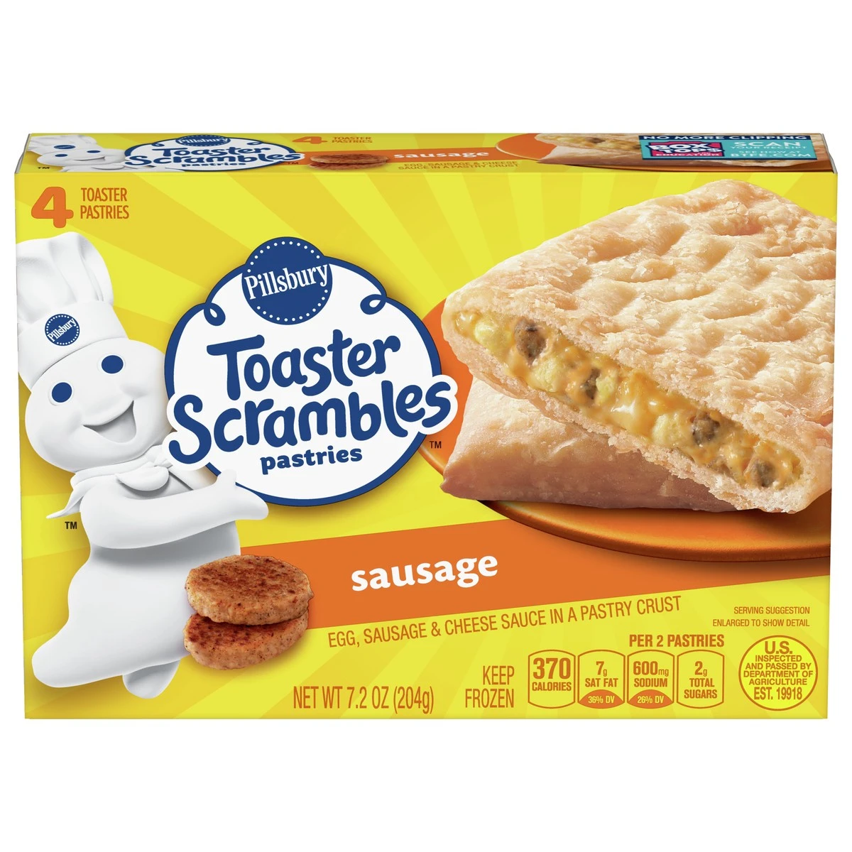Try delicious Pillsbury Sausage Toaster Scrambles pastries! Enjoy sausage, scrambled eggs, potatoes and melted cheese in a golden, flaky crust. 2 Step Directions -Do not leave toaster, toaster oven, …