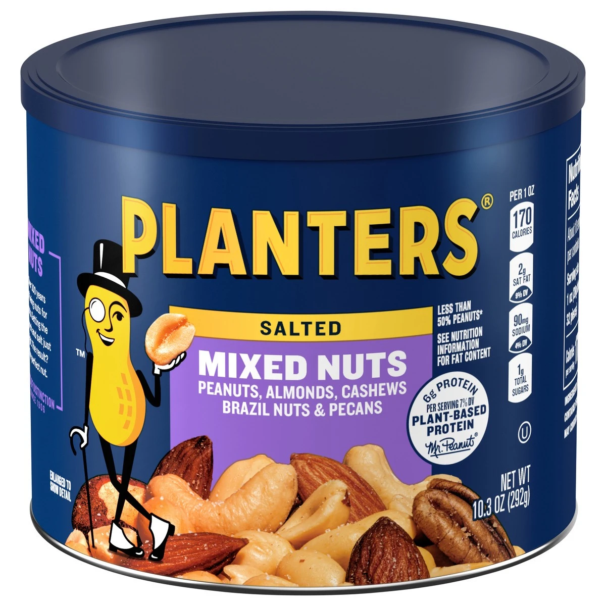 Be the first to review “Planters Mixed Nuts Less Than 50% Peanuts With Peanuts, Almonds, Cashews, Hazelnuts & Pecans, 10.3 Oz Canister” Cancel reply