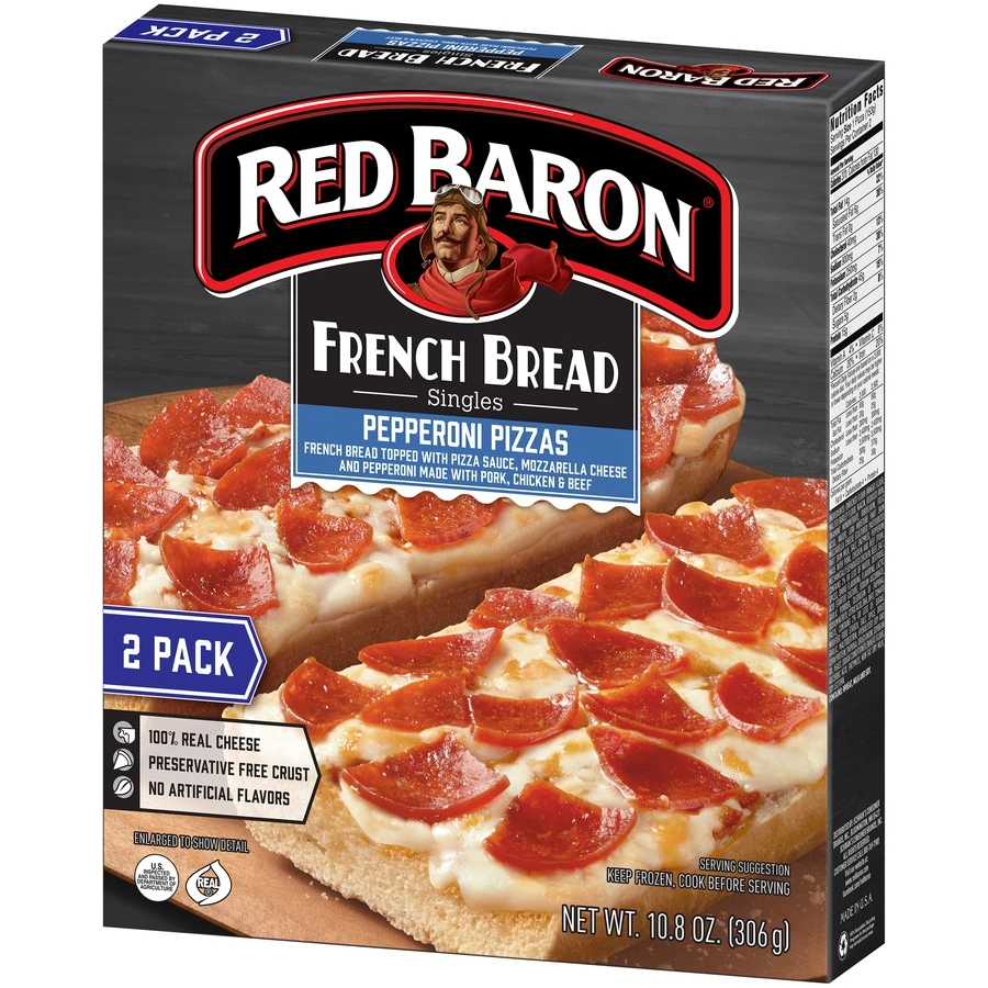 RED BARONu00ae – Calm mealtime chaos with the pizza the whole family loves! One bite into these pepperoni French Bread pizzas and youu2019ll savor the zesty tomato sauce, 100% real cheese, and a heart…