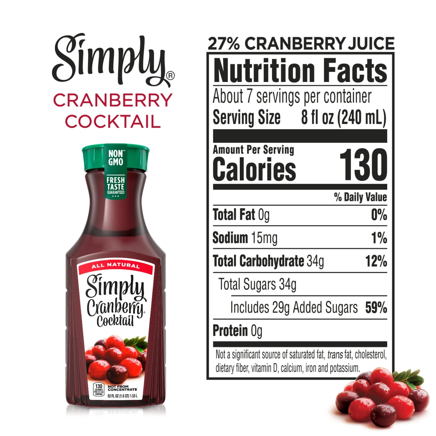 Simply Cranberry Cocktail is a deliciously simple take on the tart and sweet flavor of cranberry juice. Containing 27% cranberry juice and never from concentrate, Simply Cranberry Juice Cocktail is ma…