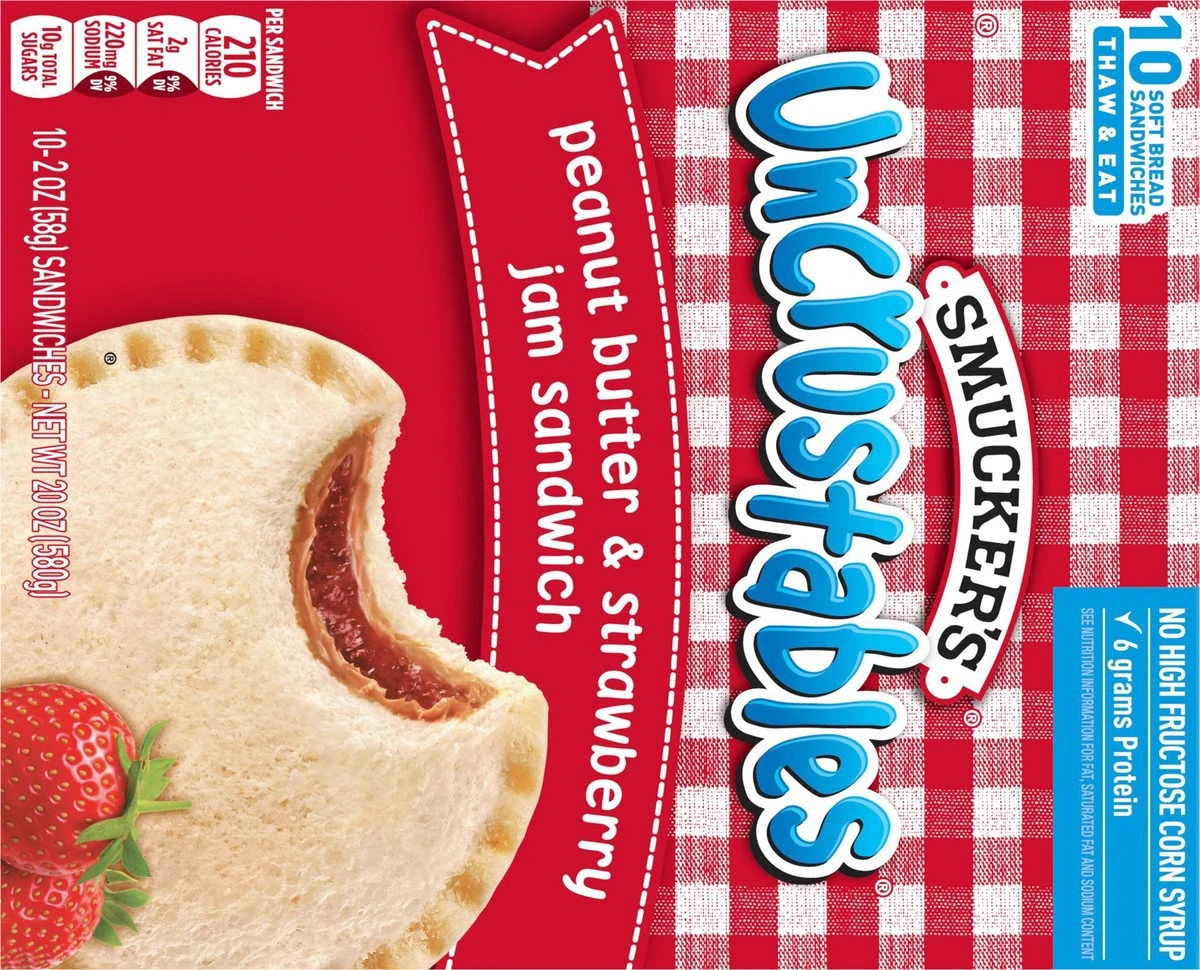 Just thaw, unwrap, and snack wherever you are! Uncrustables Peanut Butter & Strawberry Jam Sandwiches are a convenient, packable snack to take along wherever you and your kids are going next. This 10-…