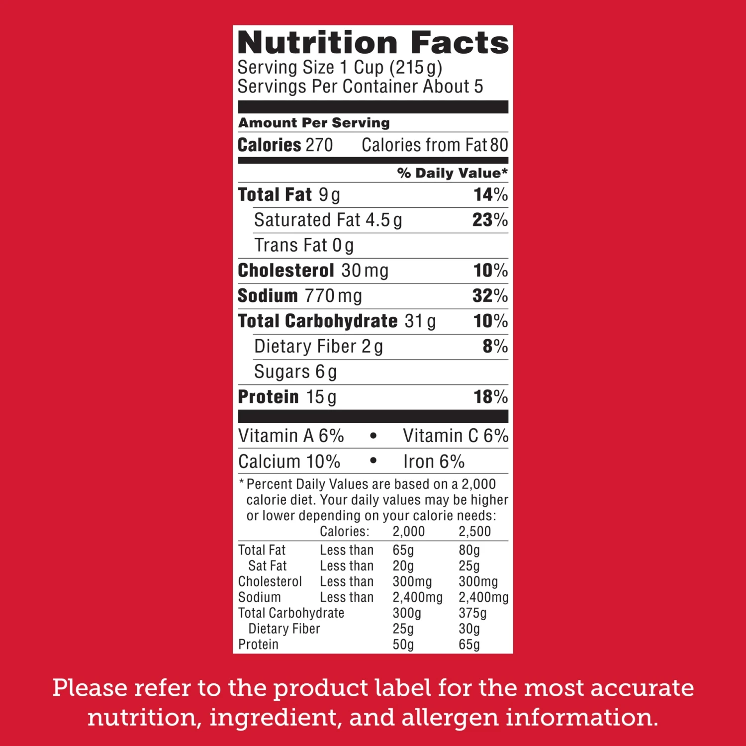 Stouffer’s Family Size Lasagna with Meat & Sauce Frozen Meal offers a quick, easy solution for lunch or dinner. This Family Size frozen meal includes freshly made pasta with 100% pure beef, herb seaso…