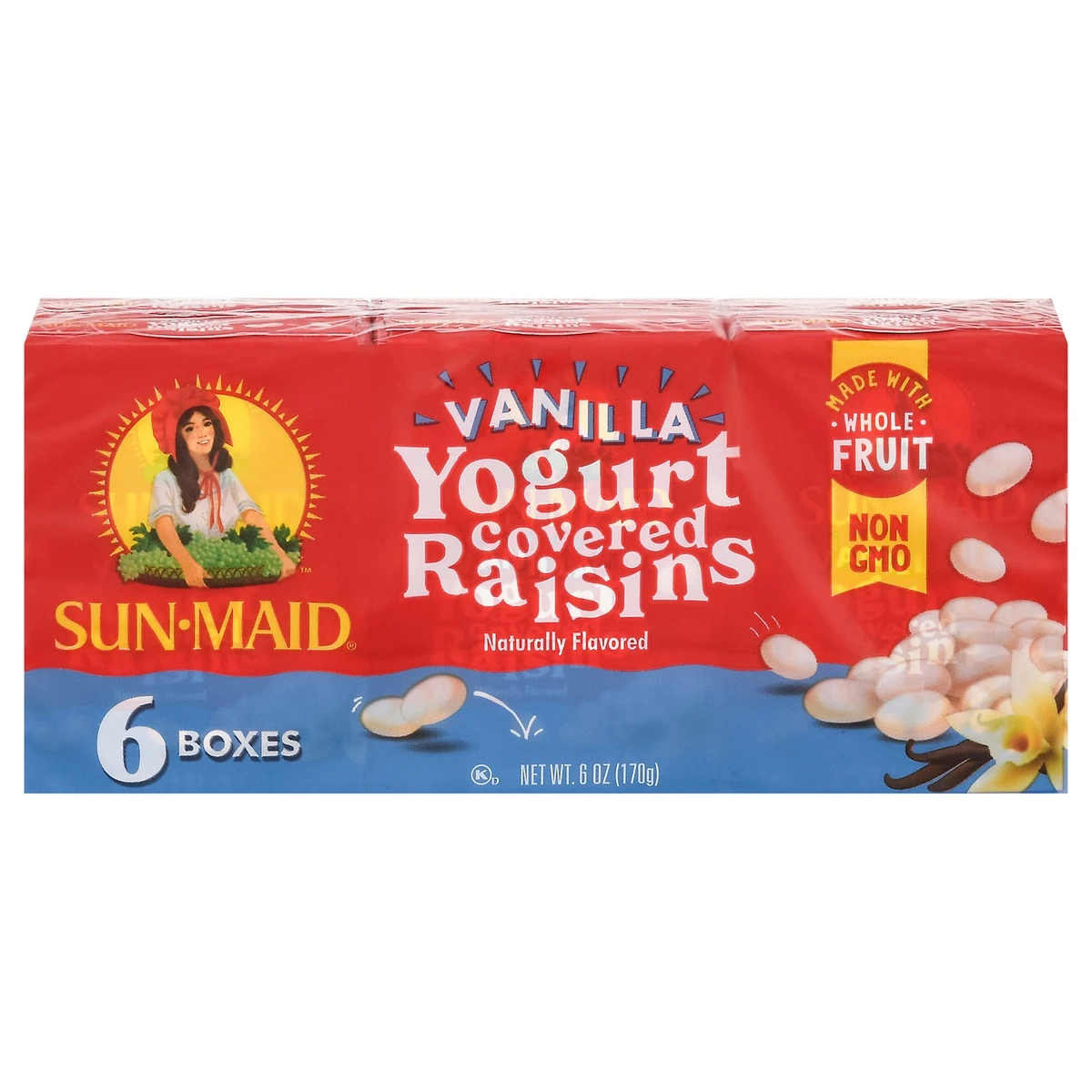 Sunmaid vanilla yogurt covered raisins kids crave them moms approve them and theyre made with whole fruit sunmaids timeless and trusted raisins are wrapped in a creamy blanket of vanilla yogurt for ab…