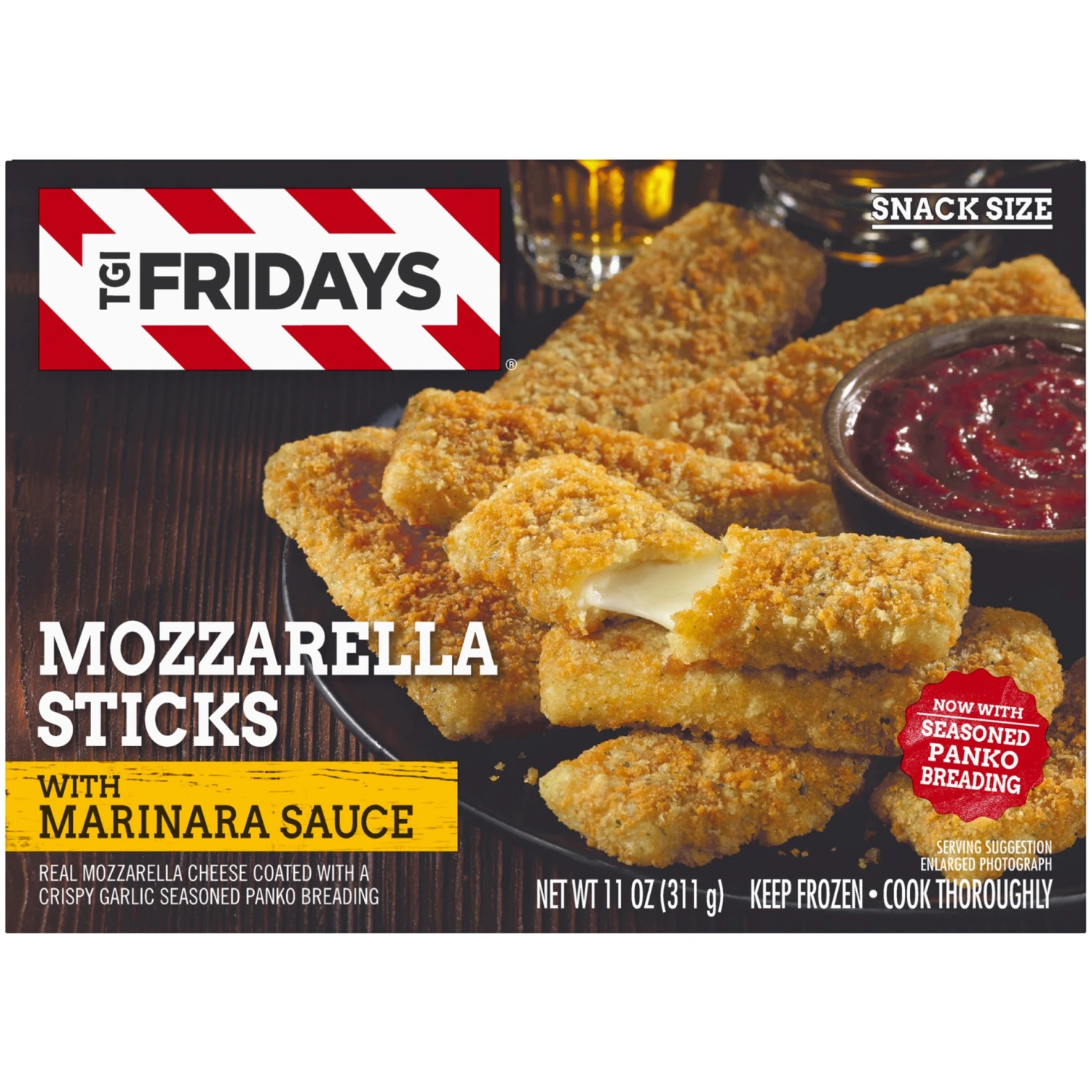 Enjoy your TGI Fridays menu favorites at home with our easy restaurant style appetizers. Ready to heat, TGI Fridays Mozzarella Sticks with Marinara Sauce are a quick and delicious appetizer or party f…