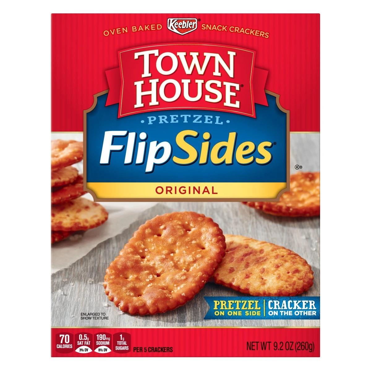 Experience the 2-in-1 pretzel-cracker crunch that makes snacking moments lots of fun. Oven-baked Town House Pretzel FlipSides Original crackers with pretzel on one side and buttery cracker on the othe…