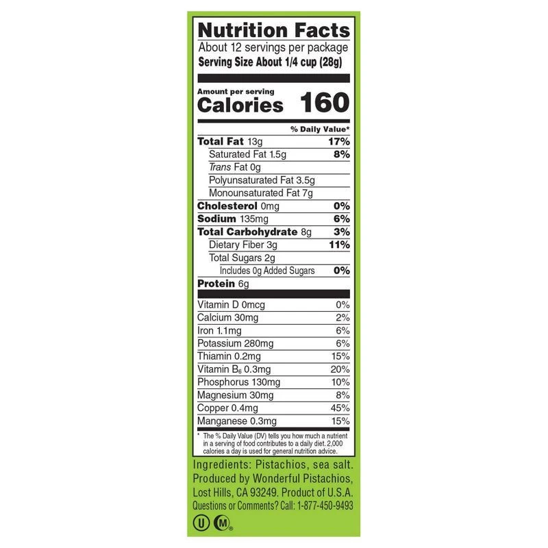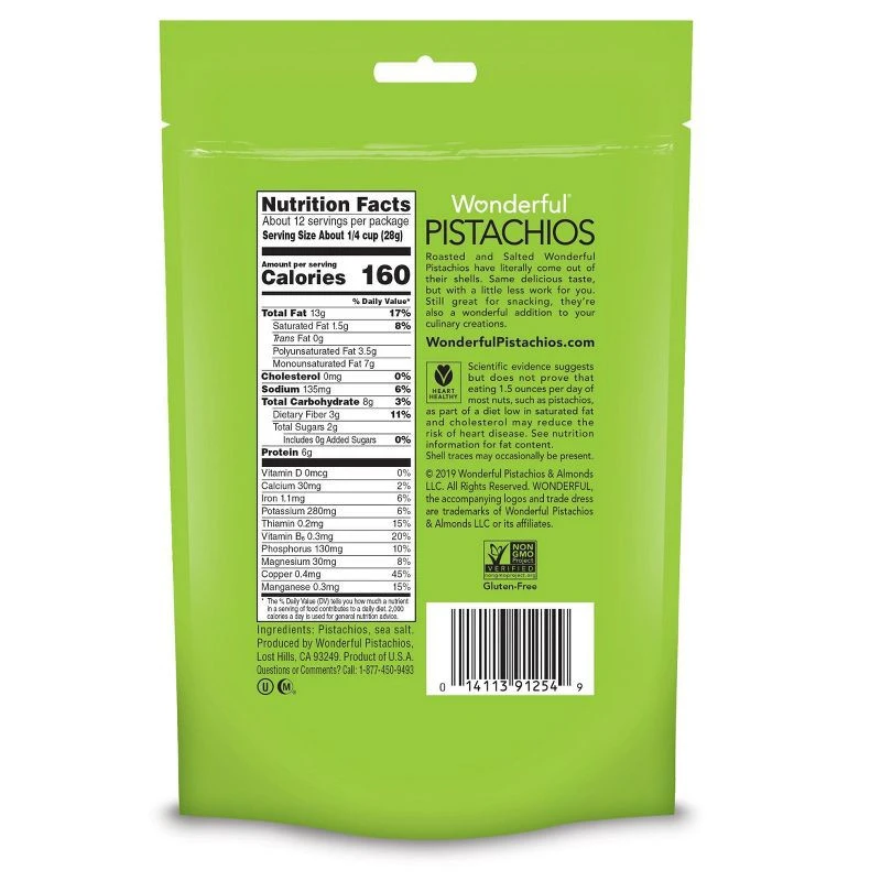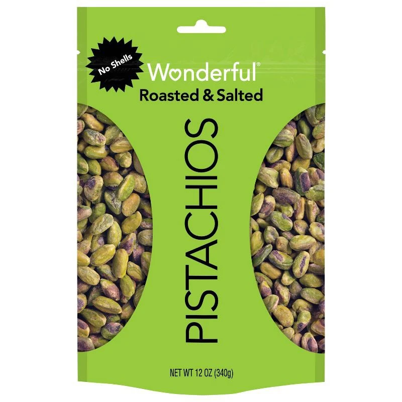One 12 Ounce Resealable Pouch of our Roasted & Salted Wonderful Pistachios No Shells Roasted & Salted Wonderful Pistachios have literally come out of their shells. Same delicious taste, but with a lit…